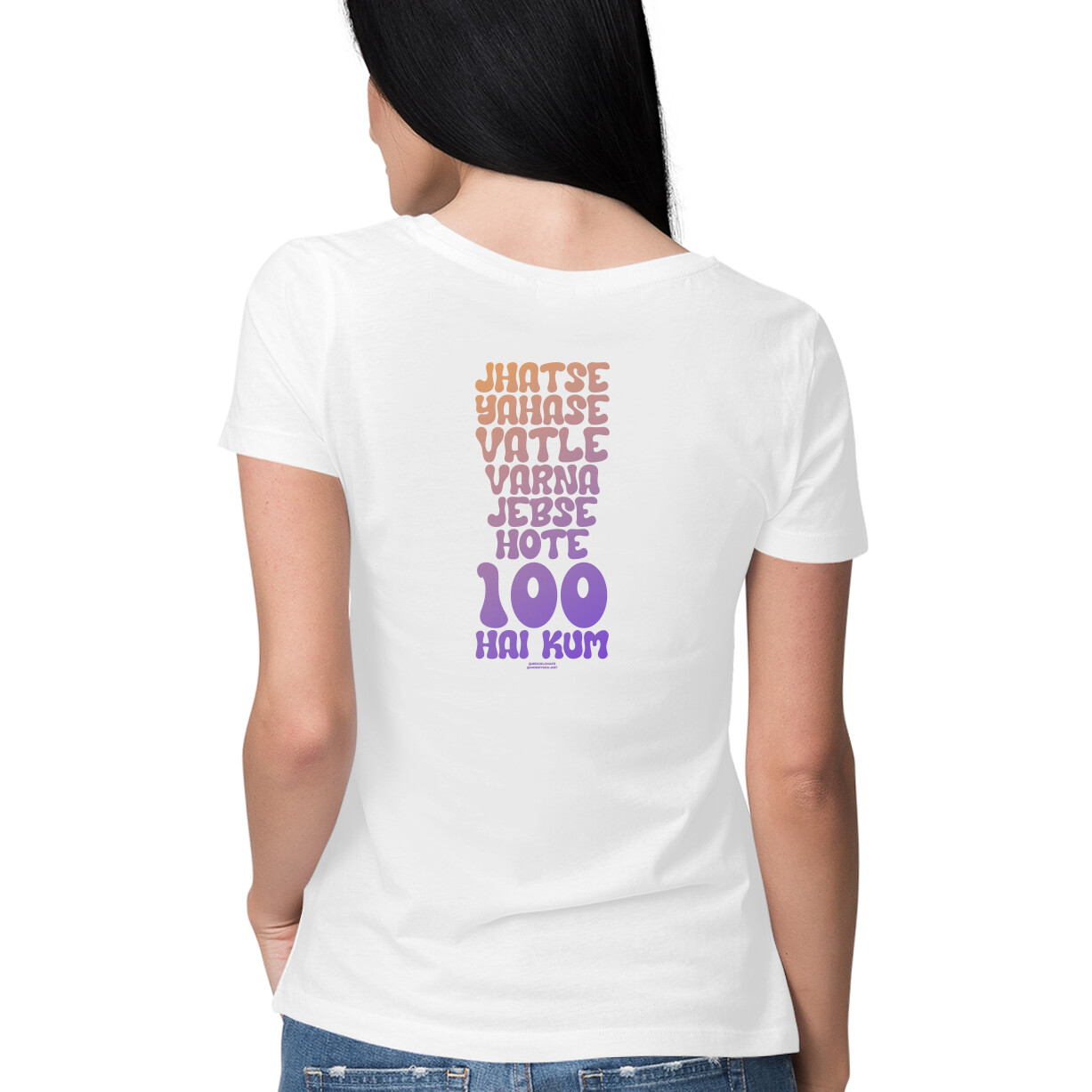 Bhaag (Cat) Regular Women’s Round Neck (White/Black)
